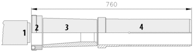 1 = Stössel / 2 = Presstufe 1 Verschleissring / 3 = Pressstufe 2 Konus / 4 = Presstufe 3 Vreschleissrohr