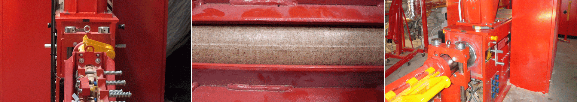 Der Pressschlitten unserer Brikettpresse hat eine Trapezform, d.h. die Kräfte, die am Schlitten auftreten, werden auf Flächen verteilt und optimal an die angrenzenden Bauteile weitergeleitet unter exakter Führung des Schlittens und optimalem Abfangen der Kippmomente. Dies ist im Hinblick auf die Produktion bei Endverbraucherbriketts mit Loch ein entscheidendes Qualitätsmerkmal der Pawert-spm Brikettpresse und hat einen grossen, positiven Einfluss auf die Einsatzdauer des Triebwerks.